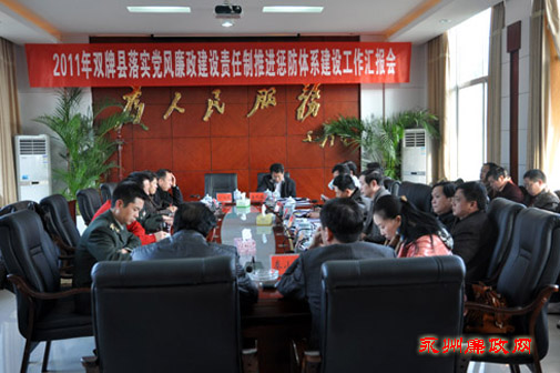 2011年,双牌县党风廉政建设和反腐败工作在市委、市政府的坚强领导下,坚持以邓小平理论和“三个代表”重要思想为指导,深入贯彻落实科学发展观,坚持反腐倡廉战略方针、领导体制和工作机制,加强组织领导,狠抓工作落实,突出制度创新,加大惩防力度,全县经济社会持续、健康发展。