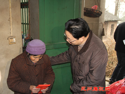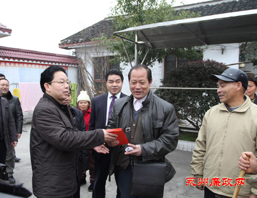 随后,董石桂一行驱车来到东安县大庙口镇,走访慰问了全国劳模徐荣元及部分困难群众。徐荣元担任乐福村支书多年,是全村致富奔小康的领头羊。董书记在详细询问乐福村的发展情况后,亲切地对徐荣元说:“你这位全国劳模不但是乐福村的骄傲,也是全市的骄傲,劳动模范是全社会的宝贵财富”,并勉励徐荣元要继续发挥模范带头作用,带领全村群众创造更多的财富,过上更幸福的生活。