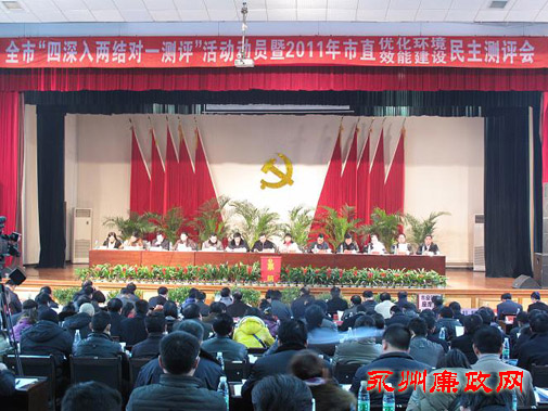 本网2月2日讯1月29日,节后上班伊始,市委、市政府在冷水滩召开“四深入两结对一测评”活动动员暨优化经济环境和机关效能建设工作民主测评会。市委书记张硕辅作动员讲话,市委副书记、市长魏旋君主持会议,市委副书记唐松成宣读《中共永州市委关于全面开展“四深入两结对一测评”活动切实改进干部作风密切党群干群关系的意见》。高建华、唐定、刘湘凌、董石桂、周德睿、蒋善生、段祥军、朱映红、唐湘林、石艳萍等在家的市级领导全部出席。各县区(管理区、开发区)党委书记,市直副处以上行政事业单位和中央、省驻永单位主要负责人参加会议。