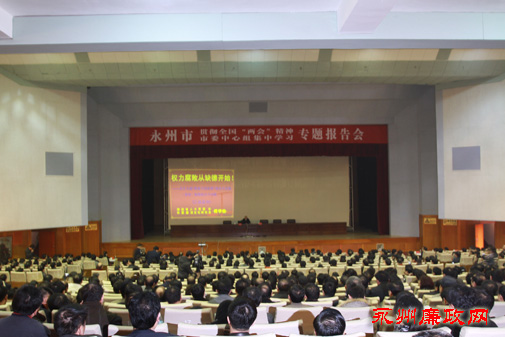 市委中心组全体成员出席了会议。各县区委书记、县区长、人大主任、政协主席、纪委书记、宣传部长、党校校长、农办主任;管理区书记、主任、纪委书记、宣传部长、党校校长;市直及中央、省驻永单位副处以上领导干部;市委、市政府两大院副科以上干部;市委党校全体教师和主体班学员共1000余人听取了报告。