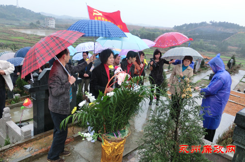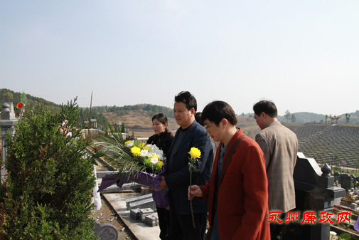 本网4月1日讯连日来,我市社会各阶层人民群众,广大党员团员干部通过各种形式的学习纪念活动,深切缅怀全国纪检监察系统重大先进典型、全国纪检监察先进工作者王海洋同志。3月30日,市委党校主体班学员到王海洋墓前祭扫;4月1日,团市委组织青年团员到王海洋墓前举办教育活动;市纪委机关新进纪检干部和年轻干部自发到王海洋墓前献花、缅怀;日月同辉陵园举办公祭活动……前来祭奠的人们通过敬献鲜花、集体默哀、祭扫坟墓等仪式,表达了自己对反腐斗士王海洋同志的缅怀思念之情。