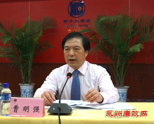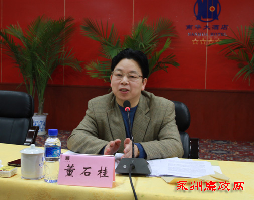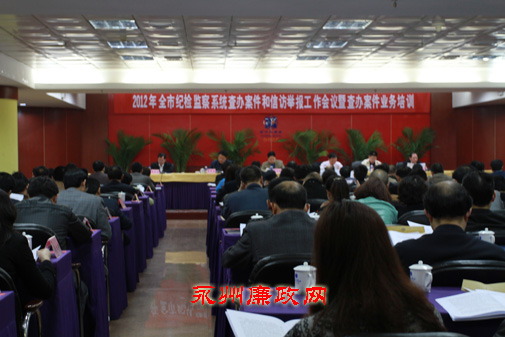 本网3月31日讯3月29日,2012年全市纪检监察系统查办案件和信访举报工作会议及查办案件业务培训会在冷水滩召开。省纪委四室主任曹明强到会指导工作,市委常委、纪委书记董石桂出席会议。