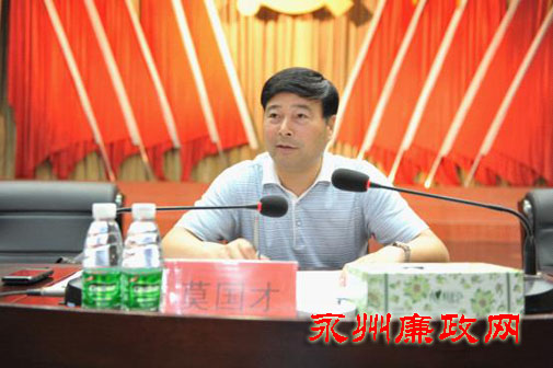 莫国才深入剖析了一批真实的典型反面事例,再次向人们敲响警钟。他围绕当前预防职务犯罪和反腐败斗争新特点、腐败犯罪现象对社会危害和如何加强对领导干部监管等方面,理论联系实际,提出了中肯的建议。莫国才说,法治工作要实行“零容忍”,对于有失职渎职行为的领导干部,要运用法律的手段从严处理追究;要建设阳光清廉的政府,切实规范公职人员的行为和待遇;要加快学校、医院等公共事业的改革,回归公共服务的本色。政府在坚持依法治国的同时,也要坚持“以德治国”,用道德的力量引导人们。莫国才认为,各级领导干部要严于律己,以身作则,做好表率,切实维护、解决好群众的切实利益。  李顺利指出,要进一步加强对党员领导干部的监督管理,必须要突出工作重点,增强监督管理的针对性;拓宽多种渠道,增强监督管理的广泛性;实施全程监督,保证监督管理的实效性。(东纪宣)