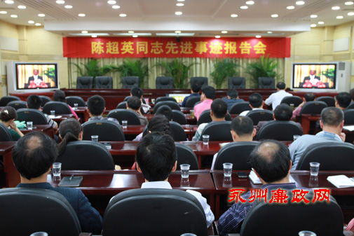 本网5月24日讯5月23日上午,由中央纪委、监察部、国务院国资委、湖南省委联合举办的陈超英同志先进事迹报告会在北京召开。市纪委、监察局组织市直单位纪检监察干部和委局机关全体干部共100余人在市政府二楼电视电话会议室收看了同步直播的视频会议。各县区同时组织收看了报告会实况。