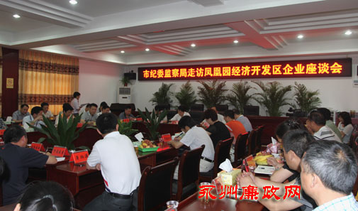 “4路公交车正常营运路段区间为中泰公司至恒丰机械厂,时间区间为7:00—21:30。但是4路公交车经常出现17:30以后仅开至市委党校就掉头回开的现象,造成弘电电子、大自然药业、奔腾印务等企业员工乘车不便。凤凰园工业园区内的桃源路、银象路等路灯经常不亮,造成晚上恒康药业、万通药业、山香香料等企业员工等出行不便且存在治安隐患。”水、电、路、有限电视……,座谈会上,企业家们畅所欲言,纷纷提出在企业发展中遇到的各类困难和疑问。相关部门一一解答。当天上午,市纪委监察局就凤凰园开发区工业园区企业反映的7个问题进行了交办。