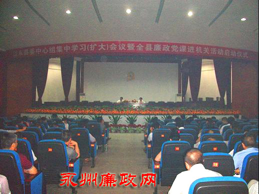 为扎实推进党风廉政教育,促进党员干部廉洁从政,江永县从7月开始,正式启动以“保持党的纯洁性和坚守从政道德”教育为主题的廉政党课进机关活动。同时,在该县13个乡镇场和87个党政机关事业单位中,全面开展党政主要负责人讲廉政党课评比活动,以讲从政道德教育、依法行政和群众观点、群众立场教育为主要内容,教育和引导广大干部职工坚持立党为公、执政为民,不断提高廉洁从政意识和拒腐防变能力,努力营造“崇廉尚廉”的浓厚氛围。