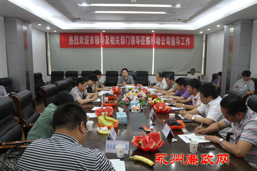 图为市委常委、市纪委书记董石桂在移动公司调研座谈会上