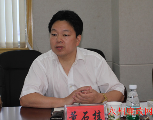 图为市委常委、市纪委书记董石桂同志主持会议