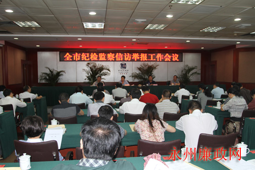 本网9月14日讯9月14日,我市纪检监察信访举报工作会议在冷水滩召开。会议通报了全市上半年的信访举报工作情况,并对下一步工作进行了具体布置。市委常委、市纪委书记董石桂要求,坚持以人为本、执政为民理念,扎实推进查办案件和信访举报工作,努力开创全市反腐倡廉工作新局面。