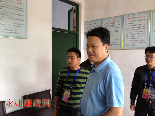 图为市纪委副书记、监察局长许洋名察看乡镇纪委监察室的办公设施