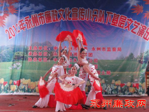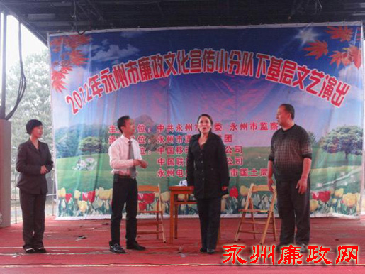 廉政文化宣传小分队到江华县演出,通过群众喜闻乐见的歌舞表现形式,大力弘扬社会正气,促进廉洁文化建设,进一步深化和拓展了反腐倡廉宣传教育工作,切实加强了党风廉政建设和反腐败工作。广大党员干部和群众在欢声笑语中不知不觉接受了勤政廉政、文明新风教育,丰富干部群众的文化生活,更使大家在思想上经受了一次洗礼,从而进一步筑牢廉洁自律的思想道德防线。构建惩防体系。(江华县纪委李祚国)
