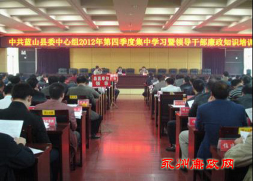 10月31日上午,省纪委纪检监察四室副主任莫国才应邀为蓝山县委中心组2012年四季度集中学习培训的全体党员干部作《法治德治并举,守牢清廉生命底线》专题讲座。培训由县委书记魏湘江主持,全体县级领导,县直单位主要负责人,乡镇场办事处党政一把手、宣传委员、纪委书记,县纪委全体干部300余人参加了学习。