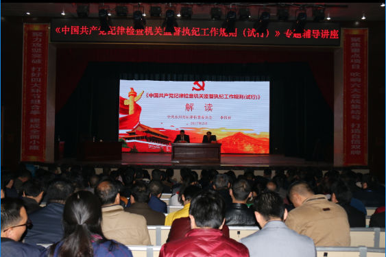 “党内监督条例规定,各级纪委是党内监督专责机关,肩负着监督执纪问责的重要职责。己不正,焉能正人。监督既要靠组织和敢于担当的人,也要靠制度。制定监督执纪工作规则,是中央纪委贯彻落实六中全会精神的重大举措。”为进一步规范执纪审查工作程序,2月19日上午,双牌县纪委邀请永州市纪委委员、市预防腐败局专职副局长李四君就《中国共产党纪律检查机关监督执纪工作规则(试行)》做了精彩讲解,全县200余名纪检监察干部“受训”。