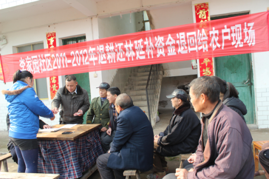 道县富塘街道李家园社区7组村民陈七付,多领取了承包社区土地的2011年-2012年的退耕还林延补资金10393元。2017年3月1日,街道纪工委与社区干部组织把这笔钱全部返还给土地承包户手中。(周林 何海翠)