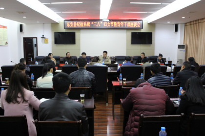 日前,东安县纪委组织召开全县纪检系统“三八”妇女节暨青年干部座谈会。县委常委、县纪委书记廖劲松出席会议并讲话。魏新林、唐伶、蒋红梅、唐满平等在家的县纪委班子成员与全县各级纪检系统年轻干部、妇女代表等与会。