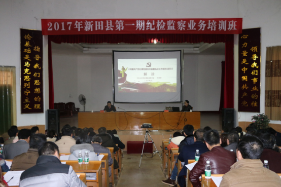 此次培训邀请到了市纪委委员、市预防腐败局专职副局长李四君,市纪委秘书科科长杨胜德,市纪委宣传部副部长陈卓韬,市纪委调研法规室主任唐阳陵,市纪委市纪委监察干部监督室副主任胡金辉,市纪委信访室主任何文艺,新田县委组织部副部长郑水龙,县委办副主任何建飞,县纪委常委、监察局副局长肖龙海,分别就《中国共产党纪律检查监督执纪工作规则(试行)》、纪检监察信息和新闻稿件写作、公文写作、执纪监督、干部执行力心理调适、谈话笔录的制作及要求、纪律审查、信访举报等工作进行全面系统的讲解。