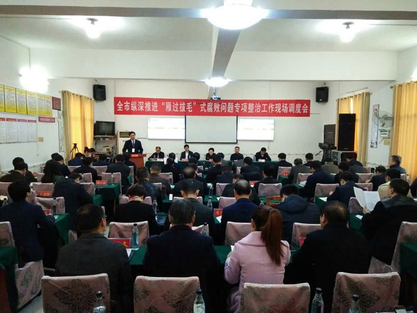 3月21日,全市纵深推进“雁过拔毛”式腐败问题专项整治工作现场调度会在蓝山县毛俊村举行,会议对专项整治工作进行回顾总结、督促推进。市委书记、市人大常委会主任李晖出席会议并作总结讲话。市委常委、市纪委书记杨永,市委常委、江华县委书记罗建华,市人民政府副市长贺辉出席会议,各县区(管理区、经开区)党委书记、常务副县区长(副主任)、纪委书记,市直有关部门负责同志参加会议。
