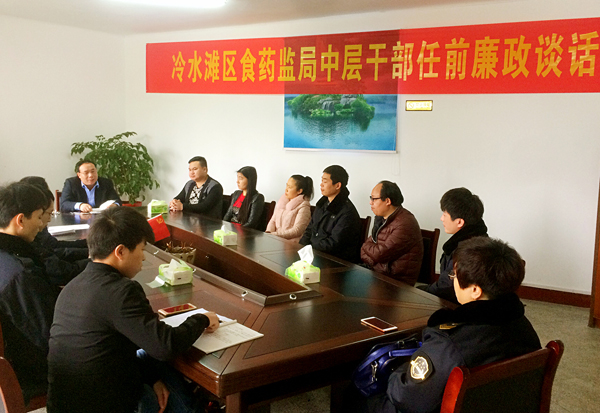近日,永州市冷水滩区食品药品监督管理局党组书记、纪检组长对新调整的11名机关股室及基层所的副职进行廉政谈话,送上任前"廉礼"。今年来,该局坚持"预防为主、教育为先、挺纪在前"理念,盯紧机关股室、基层所队正副职等中层骨干力量,在通过考察、考核、测评等方式把牢"选任关"的同时,将廉政谈话作为中层干部任前"必修课"落到实处,强化依法行政、廉政执法、廉洁自律意识,筑牢管业务也要管人管事管作风"主体责任",打好廉政教育"预防针"。(文杰)
