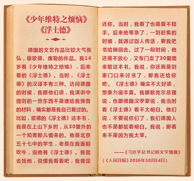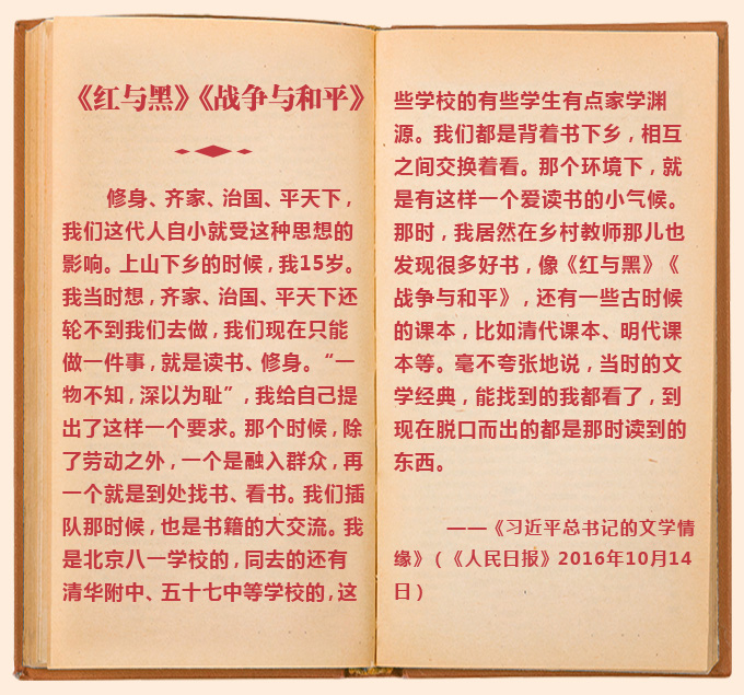 “我年轻时读了不少文学作品,涉猎了当时能找到的各种书籍,不仅其中许多精彩章节、隽永文字至今记忆犹新,而且从中悟出了不少生活真谛。”习近平总书记爱读书,近年来曾多次谈及自己的“书单”,分享自己的读书体会。习近平总书记读过哪些书?有什么心得体会?本网梳理了他关于读书的部分论述,让我们一起来看看。