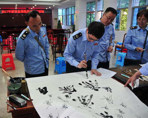 5月4日,新田县国税局开展党风廉政建设纪检日活动,组织学习了中央和省市有关廉政文件,并组织全局干部职工每人书写1个“廉”字,构建了1幅国税“百廉图”。