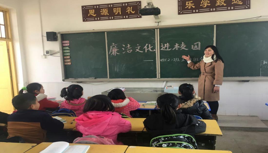 石期市镇中心小学四(3)班主任唐淑玉老师坚持上好“廉洁”这最后一堂课