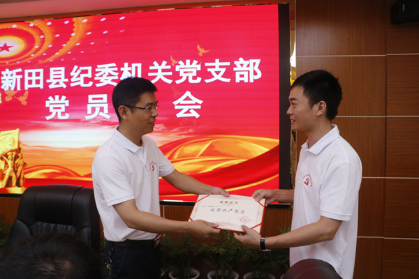 6月30日,在“七一”建党节前夕,新田县纪委通过开展“重温入党誓词、表彰先进、上主题党课”等一系列形式多样的主题活动,纪念党的生日,教育引导纪检干部时刻牢记党员身份,时刻不忘初心,时刻做到忠诚干净担当。