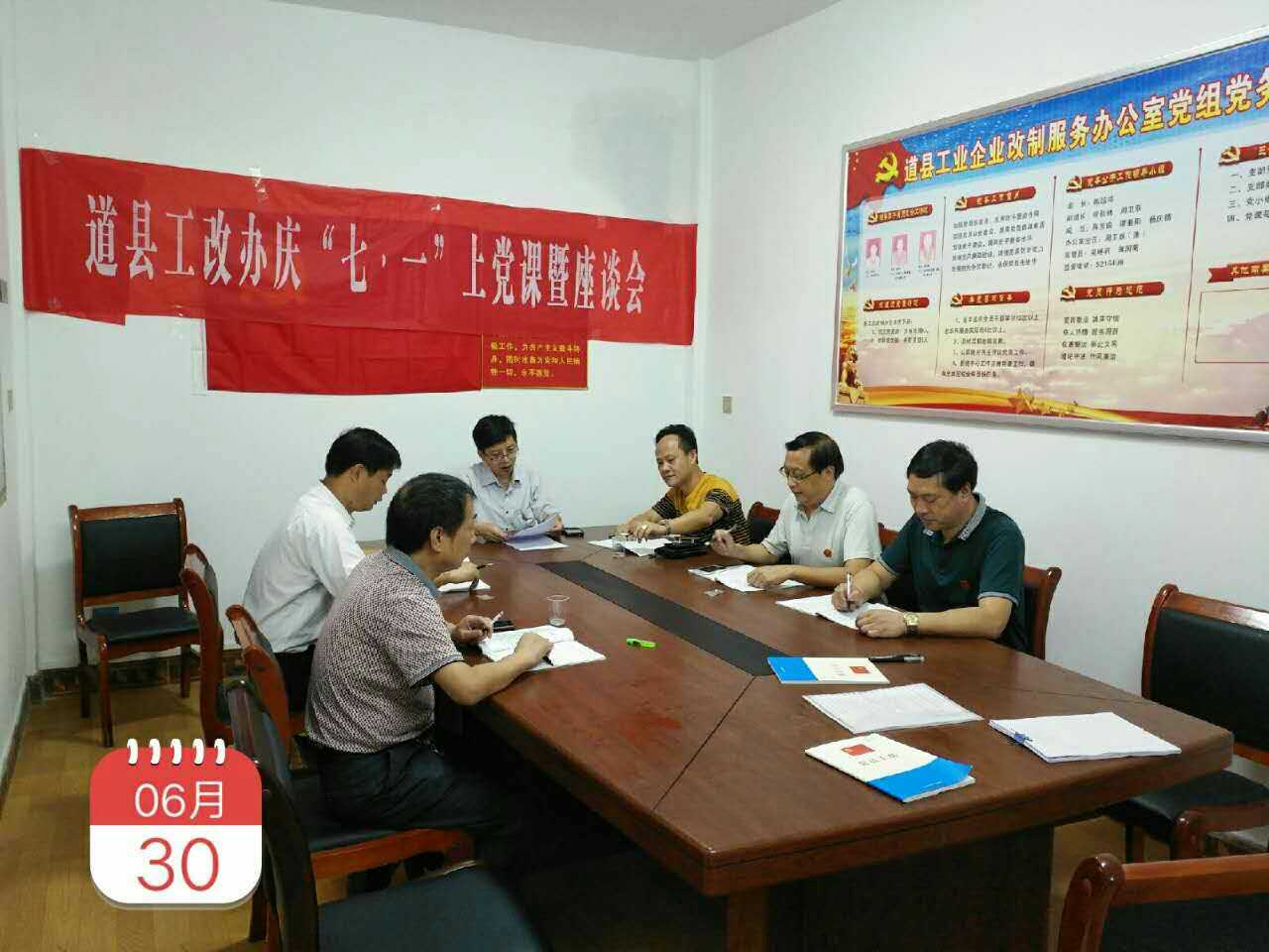 日前,道县工业企业改制服务办公室组织开展“庆七一”主题党日活动,走访老党员、集中上党课、半年评议党员、缅怀革命先烈、重温入党誓词,共同表达对党的无限忠诚,庆祝中国共产党成立96周年。
