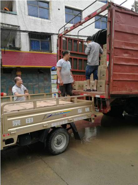(胡纯辉带领纪检干部到零陵南路严重内涝处帮助受灾群众转移货物)