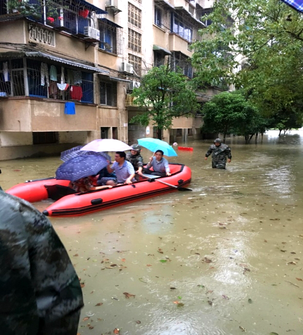 7月2日上午,永州市路桥公司老干所因地势低,被洪水淹没,零陵区七里店街道纪委书记蒋跃进带领纪检监察干部迅速赶往现场抗洪抢险,成功转移群众16人次。