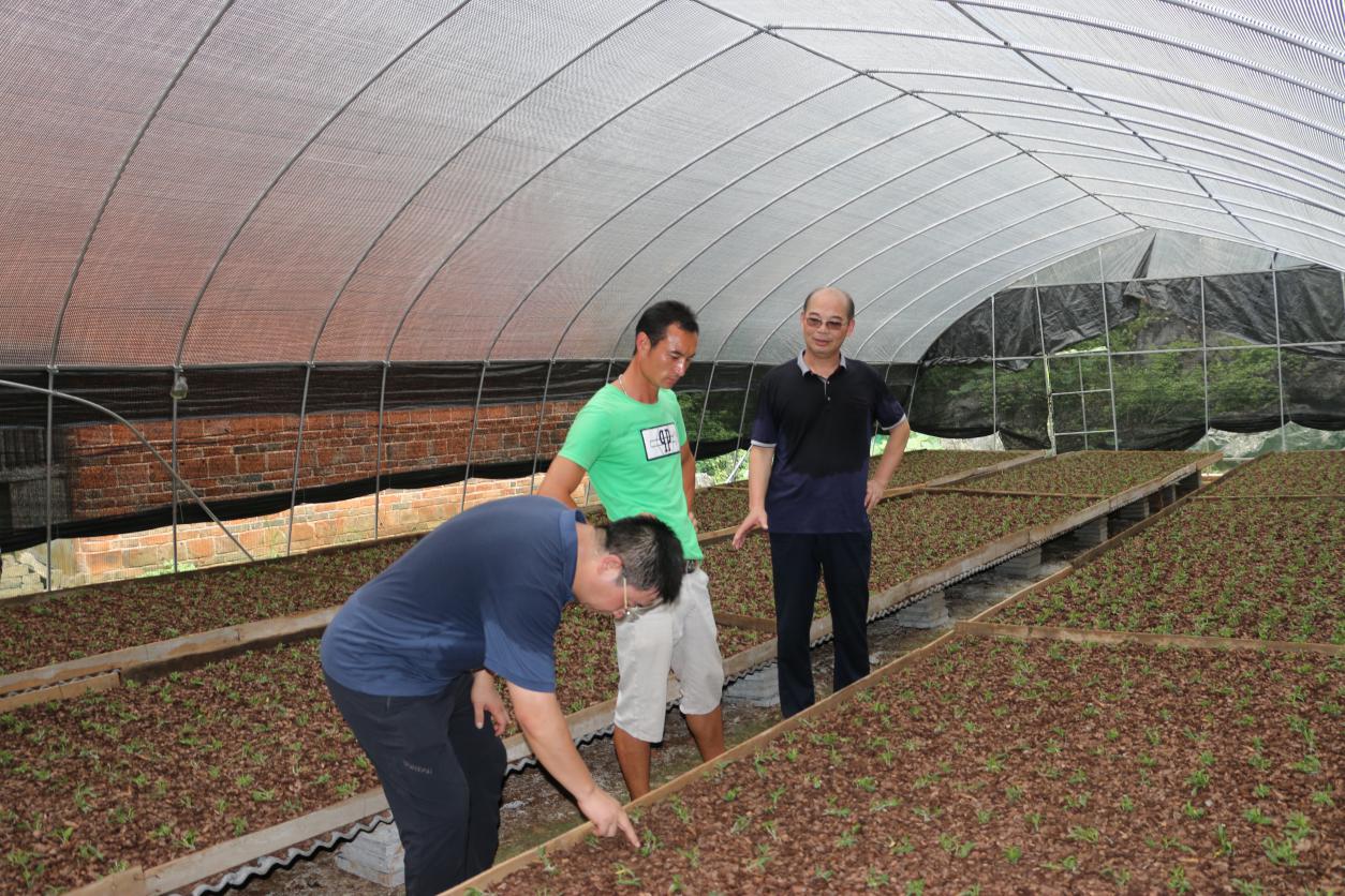(图为纪委副书记胡承斌实地查看贫困户何石生石斛种植情况)