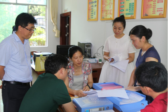 图为市纪委督查组查看寿雁镇党风廉政建设责任制工作相关资料
