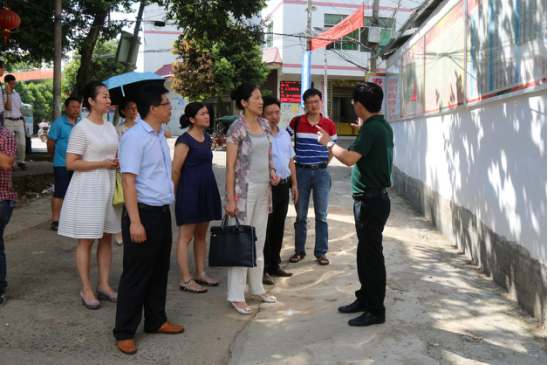 图为市纪委督查组现场查看寿雁镇惠民资金宣传栏