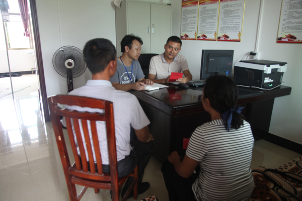 2016年4月28日,蓝山县太平圩镇纪委工作人员接待群众来访,群众反映没有领到惠民补贴等问题