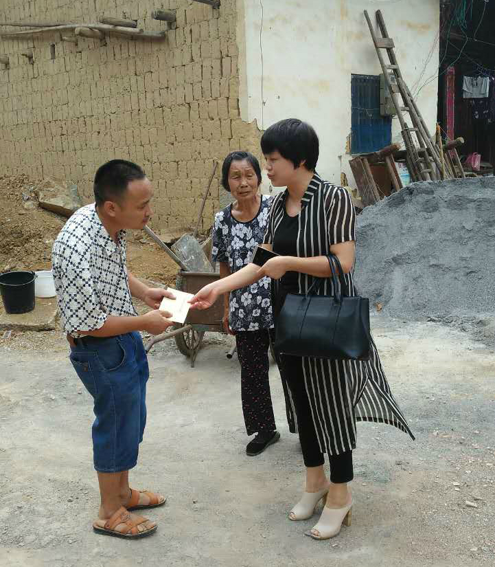 8月24日,冷水滩区委常委、纪委书记彭峰(上图右一)在花桥街镇秀井头村走访慰问贫困户刘大忠。刘大忠患有肢体残疾,全家仅靠爱人在浙江打工来维持基本生活和供儿子上学,家中还有年迈体弱的老母亲需要照顾。但是,就在这个八月刘家收到一个好消息——刘大忠的儿子以557 分高分被广西大学录取,让这个贫困家庭重新看到了希望。冷水滩区纪委书记彭峰在得知这一情况后立即将2000元慰问金送到刘大忠家中,作为儿子的生活费。这是一种鼓励和嘉奖,同时也是一份心意和祝福。在慰问中,彭峰向刘大忠了解了家中近期的生产生活情况,并嘱咐刘大忠告诉儿子要安心上学,学成归来好为国家、为社会做出应有贡献。刘大忠接过钱感激地说:“感谢政府,谢谢你们给我们关心,这个钱我一定替儿子好好收着,我会要他好好学本领,将来做个有出息的人。”(张敏 陈滋 )