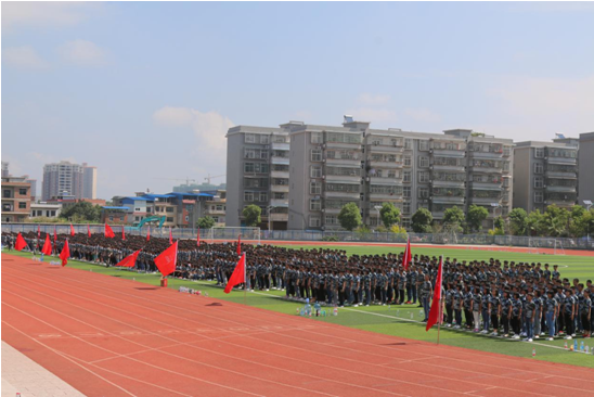 “一二一”“一二三四”。各学生连队高喊着口号,迈着整齐的步伐行进在操场上,体现着一种团结向上的进取精神。