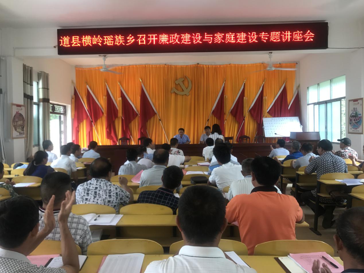 8月28日,道县横岭瑶族乡召开廉政建设与家庭建设座谈会,并由县纪委宣传部长周林就“廉政建设与家庭建设的关系”进行辅导授课。进一步督促乡镇、各村党员干部把好家庭廉洁关,在全乡形成廉洁、诚信、敬业、奉献、正派、担当的良好氛围。乡党政班子成员及家属,各村主要干部参加了座谈会。