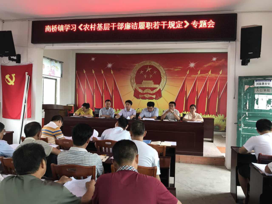 为进一步加强农村党风廉政建设,近日,南桥镇纪委在镇政府四楼会议室组织开展学习《农村基层干部廉洁履行职责若干规定(试行)》专题会,全体干部职工、村支部书记共60余人与会。