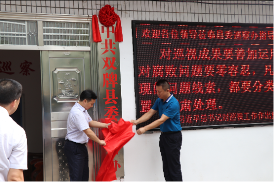 县委书记苏小康、县长肖质彬为县委巡察工作领导小组办公室揭牌。揭牌仪式上,县委书记苏小康代表县委对县委巡察办的挂牌成立致辞并表示热烈祝贺。苏小康指出,开展县委巡察工作,打通全面从严治党“最后一公里”,对于提高党的执政能力,提升党的凝聚力和战斗力,具有十分重要而积极的意义。双牌县委高度重视巡察工作,将全力支持和保障县委巡察工作的开展,严肃处理巡察过程中发现的问题。要求各巡察组准确把握政治巡察要义,围绕“三大问题”、“六项纪律”和“三个重点”,严格遵守巡察权限,依规依纪开展巡察。