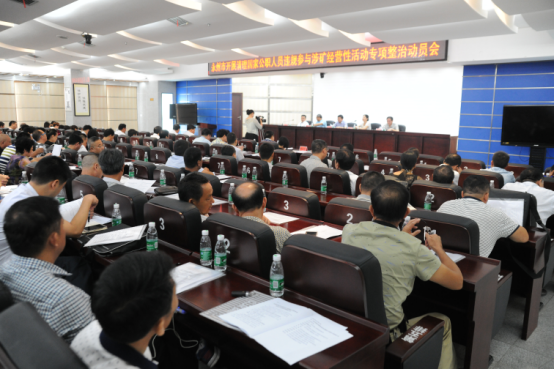 市国土资源局党组成员、副局长唐涨国主持会议。市国土资源局党组成员、市纪委驻局纪检组组长黄湘永宣读《永州市开展清理国家公职人员违规参与涉矿经营性活动专项整治工作实施方案》,市国土资源局党组成员、副局长黄虎雄宣读《永州市国土资源局开展清理国家公职人员违规参与涉矿等经营性活动专项整治工作实施方案》。市局干部职工,各县区国土资源局局长、纪检组长,省、市发证矿山企业法人代表共230余人参加会议。