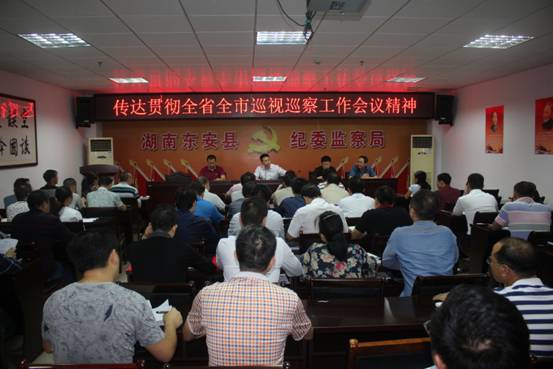 10月10日上午,东安县纪委组织召开专题会议,传达学习贯彻全省全市巡视巡察工作会议精神。会议由县政府党组成员、县纪委副书记、县监察局局长魏新林主持,县委常委、纪委书记廖劲松出席会议并讲话,委局机关全体干部职工、县委巡察办、巡察组成员、作风办全体人员等与会。