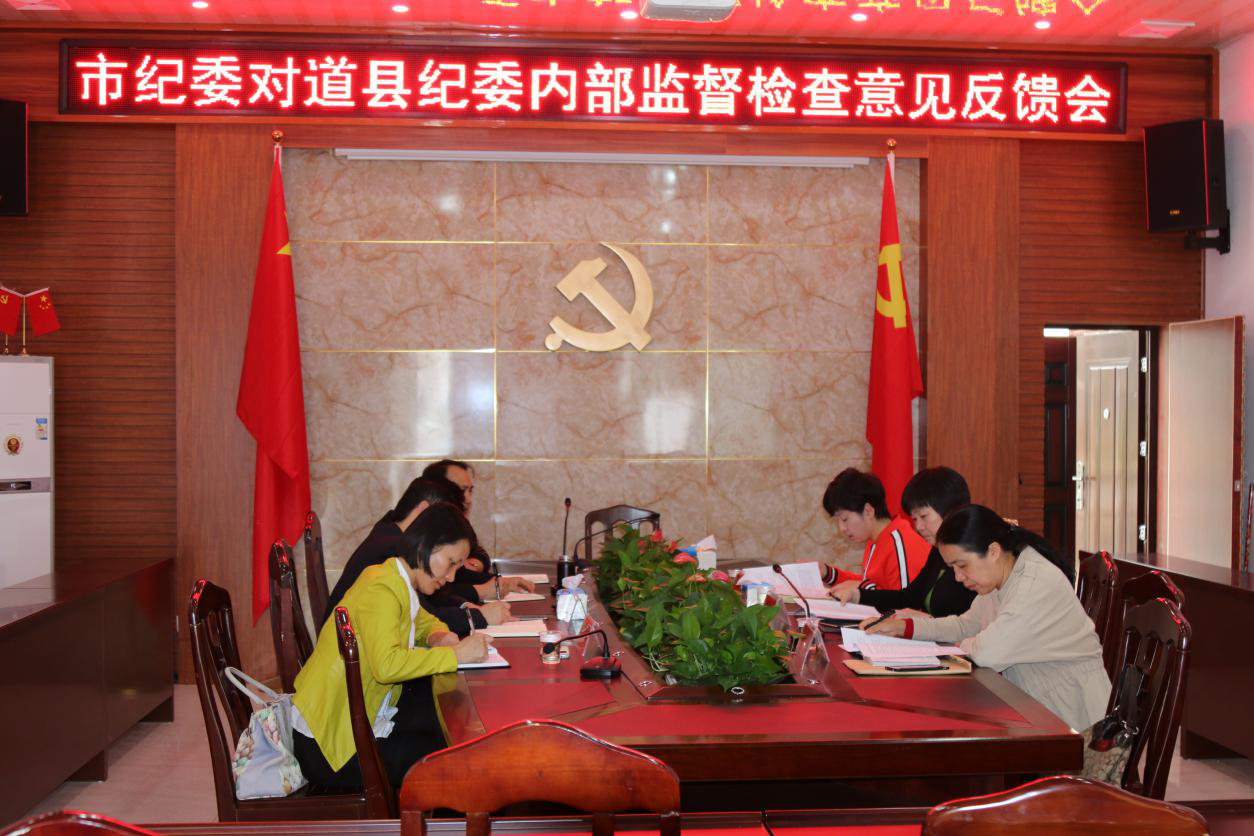 11月9日下午,市纪委副书记黄薇率市纪委内部巡察组一行,在道县纪委会议室召开对道县纪委内部巡察意见反馈会。道县县委常委、县纪委书记雷军平及县纪委三位副书记参加了会议。