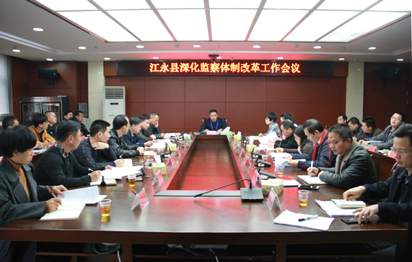 11月20日,江永县召开深化监察体制改革工作会议,安排部署全县监察体制改革,对相关部门进行职责分工。县人大、县纪委、县检察院、县委组织部、县委办、县委宣传部等13个相关单位负责人近40人参加会议,县委常委、县纪委书记吴军臣出席会议。