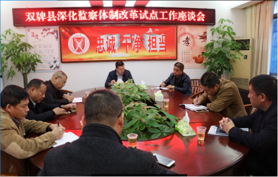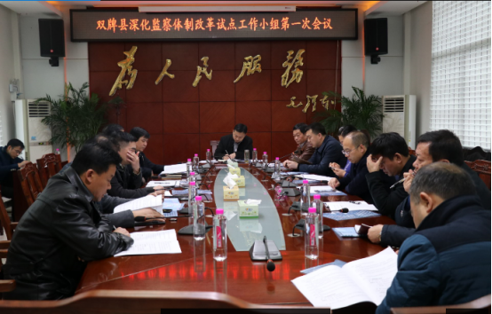 二是分工协作压实责任,稳妥推进改革试点工作。11月18日,召开了深化监察体制改革试点工作小组第一次会议,经会议研究并报县委常委会审议决定,双牌县成立了深化监察体制改革试点工作小组,由县委书记苏小康担任工作小组组长,并设立了工作小组办公室,办公室下设综合指导组、纪法衔接机制组、监司衔接工作组、后勤保障组、组织组、宣传组六个小组,各小组各司其职、分工协作,全面落实深化监察体制改革试点工作的有关要求和决策部署。(周幻)