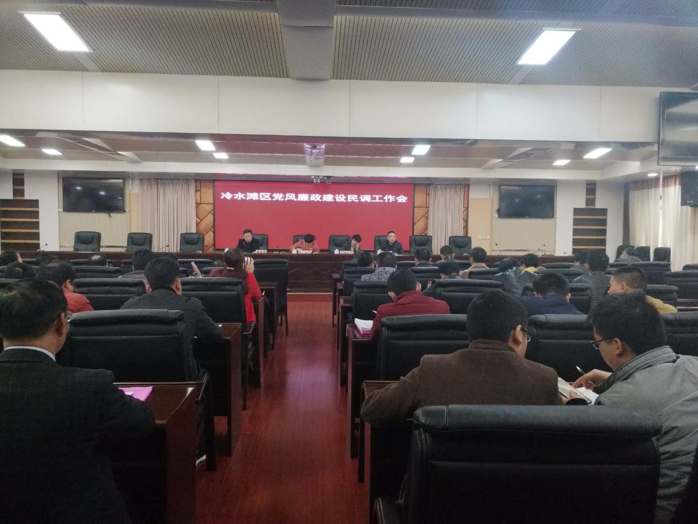 冷水滩区纪委召开党风廉政建设民调工作会议现场
