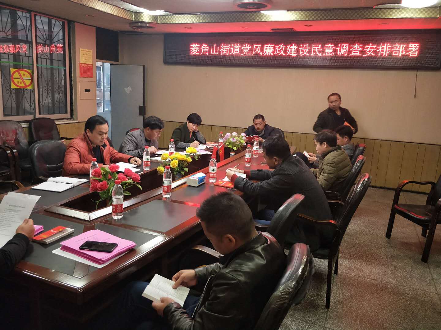 图为会后冷水滩区菱角山街道第一时间传达会议精神,召开部署会