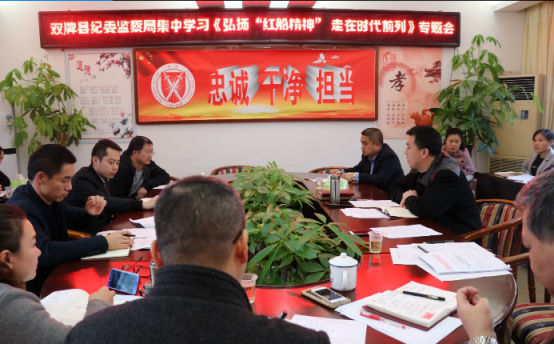 12月11日下午,双牌县纪委监察局召开弘扬“红船精神”专题会。会上,县纪委书记李群辉带领大家认真学习了习近平总书记的署名文章《弘扬“红船精神”,走在时代前列》,并联系实际就如何学习应用“红船精神”推进全面从严治党深刻地谈了体会,参会人员结合各自实际,就如何弘扬“红船精神”畅所欲言。