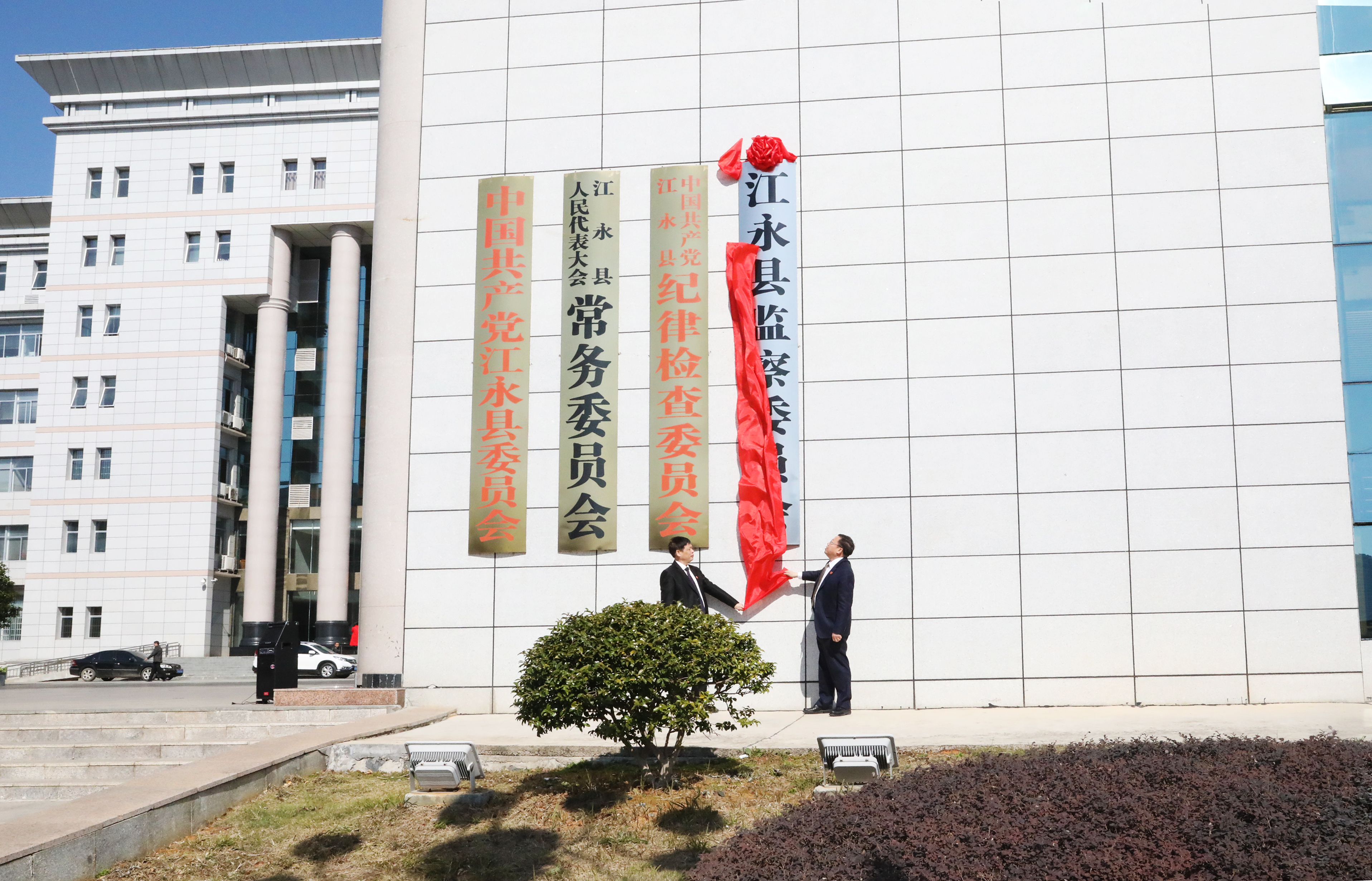 11点50分,江永县监察委员会正式挂牌成立。江永县委书记周立夫、县人大常委会主任黄智亮为江永县监察委员会揭牌。这是永州市首个县级监察委员会挂牌成立。