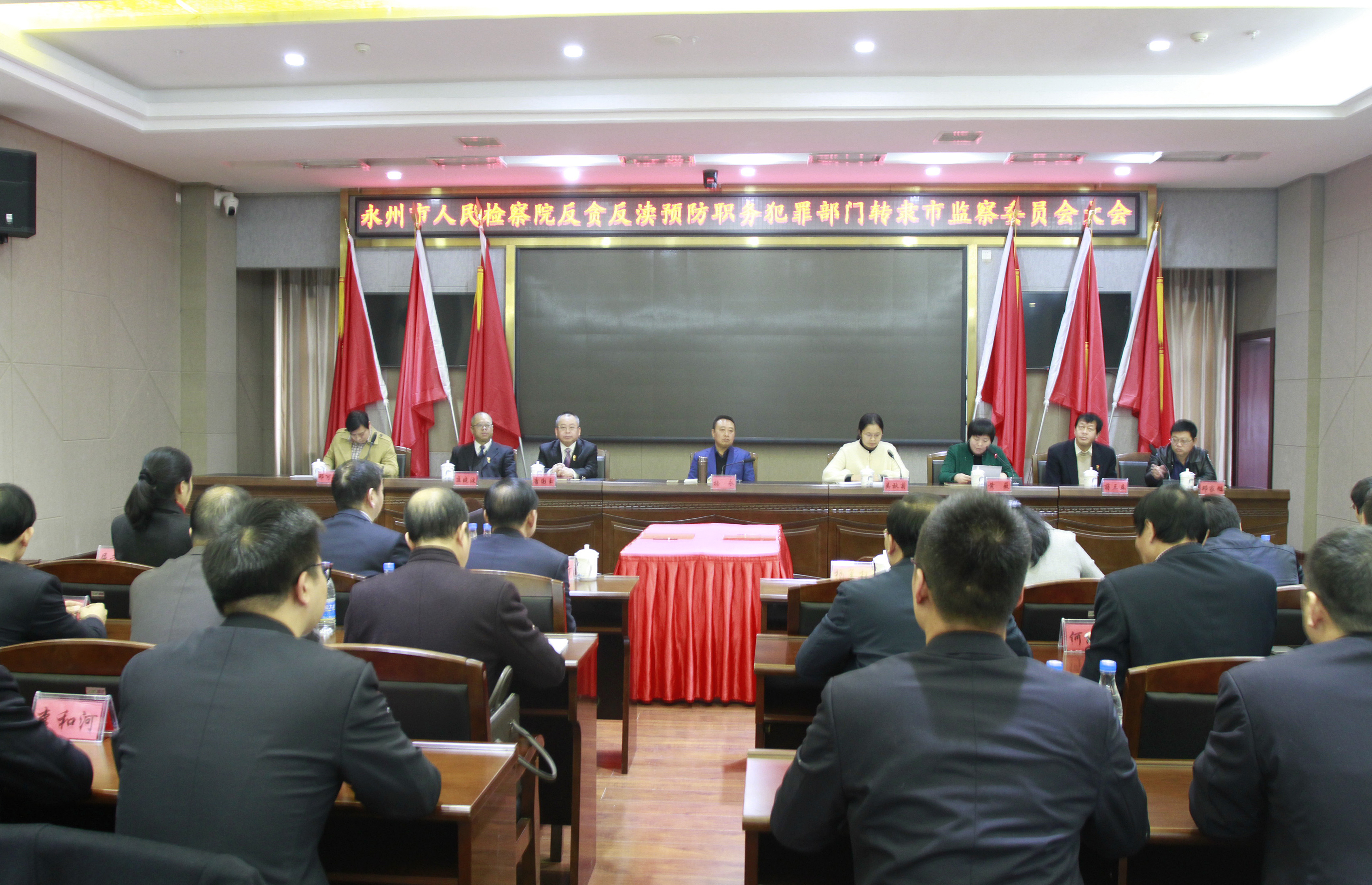 12月27日,永州市召开市检察院反贪、反渎、预防职务犯罪部门转隶市监察委员会大会,完成人员转隶,做好资产、线索移交工作,站稳第一台阶,为下步工作打好基础。