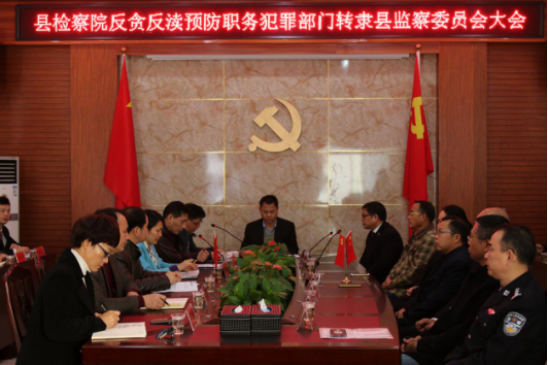 县检察院检察长沈阳讲话中指出,县检察院按照县委深化国家监察体制改革试点工作小组的要求,全面抓好改革试点方案的组织实施和具体落实,认真做好过渡期各项政策和工作的衔接,把转隶前需要完成的准备工作做实做细做深,凝聚了共识、制定了方案、摸清了底数、建立了台账、移交了线索,为转隶后各项工作正常运转提供了保障。县委常委、县纪委书记易恢节出席会议并讲话。他指出将以组建转隶为契机,坚持党的领导、坚持依纪依法、坚持全面融合、坚持铁军标准,切实履行好纪检监察两项职能,更好地把党风廉政建设和反腐败斗争引向深入。