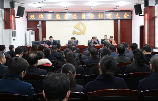 随后召开了双牌县监察委员会组建大会。会上,唐冬华宣读了《转隶人员名单》、《人大公告》和《任命决定》;县人民检察院主要负责人代表涉改单位作表态发言;县委常委、县纪委书记李群辉就如何做好全县纪检监察工作进行了安排部署,要求要坚持深度融合,开创全县纪检监察工作新局面;强化责任担当,提高执纪执法的能力水平;狠抓能力建设,锤炼纪检监察干部忠诚卫士。